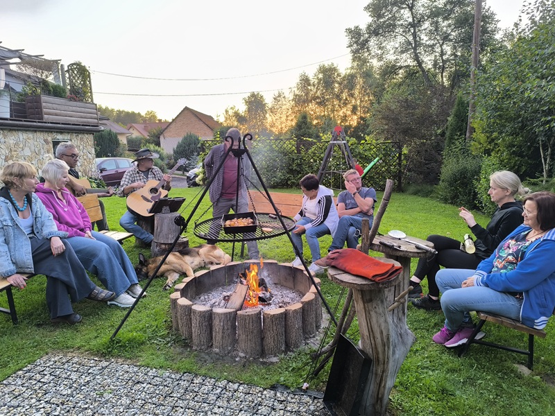 Przy wiacie ogniskowej jest miejsce ogniskowe, przy którym biesiadujemy często, od wiosny do jesieni, ale zdarzają się ogniska zimowe.